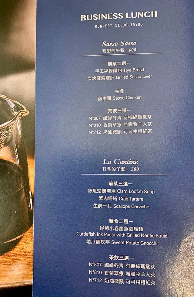 平日午餐11:00-14:00 可以選擇商業午餐,500/600元即有前菜、主食、飲料,價位非常划算
