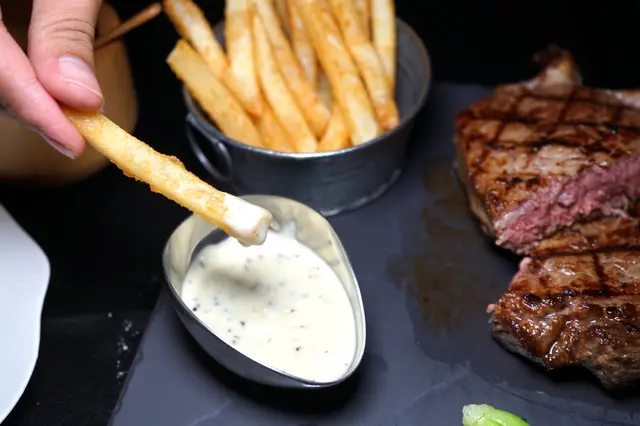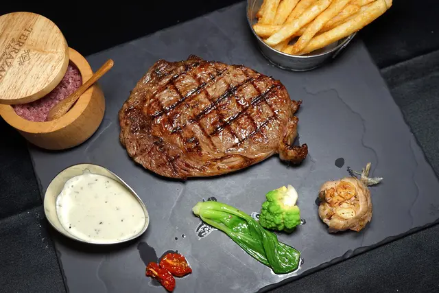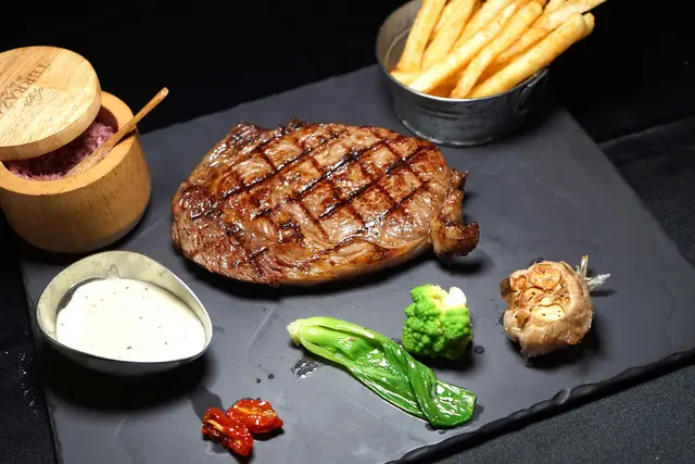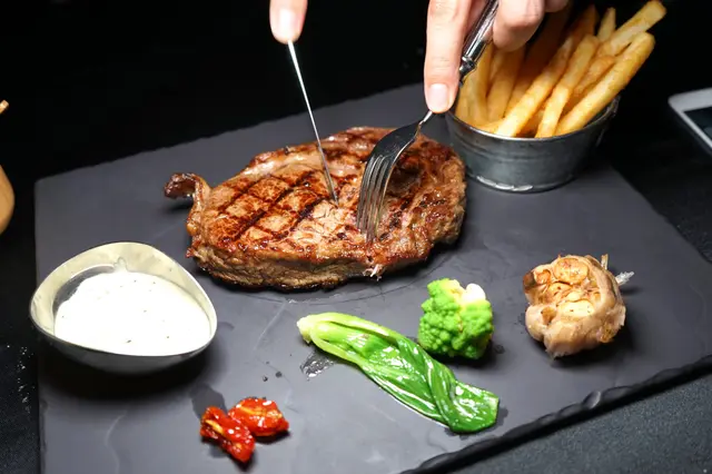 品嚐起來有五分熟的水準~肋眼的油花特別香甜~搭配軟嫩的肉質