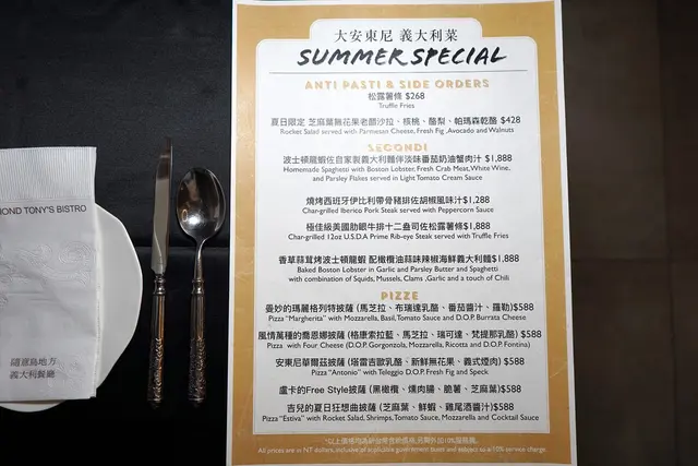 限定版的菜單~我們點了三分熟的頂級美國肋眼十二盎司佐松露薯條$1888