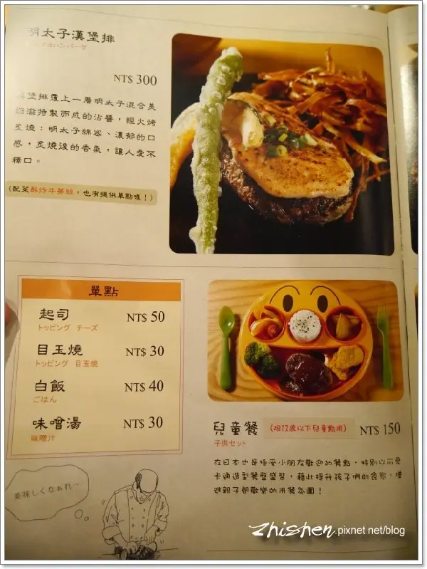 店家主食共有六種的漢堡排及一品兒童餐,前菜則有六道供來店民眾選用,先不論是不是重質不重量,品項上應該不算太多…