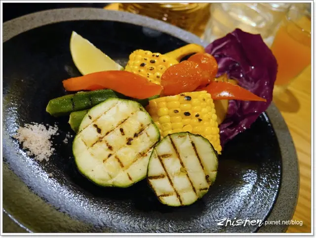 溫熱的野菜有著自然的香氣,沾點鹽更襯出其甜度,簡單清爽好吃。
