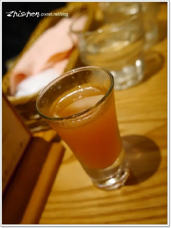 在店內享用主食餐,每個人都有杯溫和順口的果汁可以喝喔…