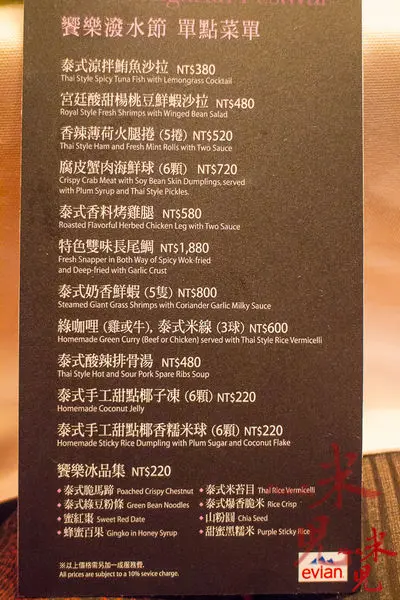 享用潑水節套餐還送一瓶EVIAN礦泉水!