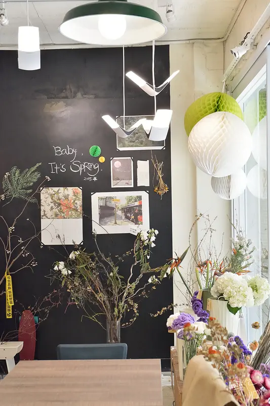 原以為是小巧的店面,但其實室內空間遠比我所想像的來的大,一旁像是花店感的區域,店員親切的招呼與介紹今日私房料理是泡菜豬肉,我想,我喜歡這裡的氛圍。