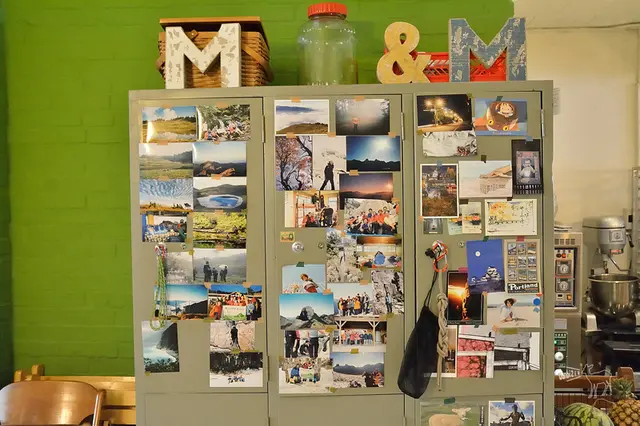貼滿歡樂照片的置物櫃,宛如國外以青春高中或大學生為訴求的影集常出現的場景。