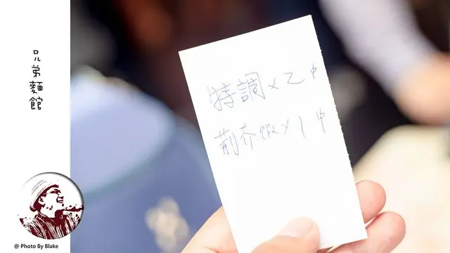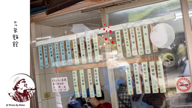 兄弟麵館菜單就是手寫的啦!主要就看價目表為主,然後價目表只要有賣完,那個牌子就會蓋牌,中午時段來通常都不會蓋牌,越晚則是蓋的越多,點餐就是會在小紙條上面寫上你要的麵、幾份、大中小,原則上不論是大中小都是同一價,小紙條大多都是隔壁印刷店的廢紙利用,然後超多學生會拿著紙條畫畫或者是留下許多評論,蠻學校旁邊的餐廳。