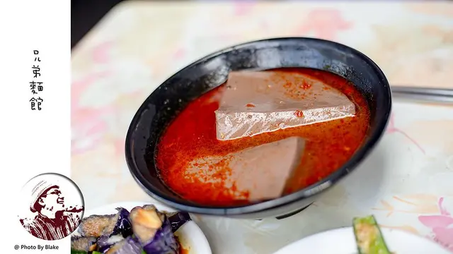 原則上每次來兄弟麵館都會來塊鴨血或者是臭豆腐,老闆都是一大鍋在那邊煮,煮到整個很入味很香,晚上來吃有時提早賣完還點不到,重點一份才20元,價格很便宜,煮麻辣鴨血豆腐的湯也能喝,鹹香帶有一點辣度其實也不賴。然後我們又有拿了一份雞捲,原則上就是雞捲,無功無過就可以啦!