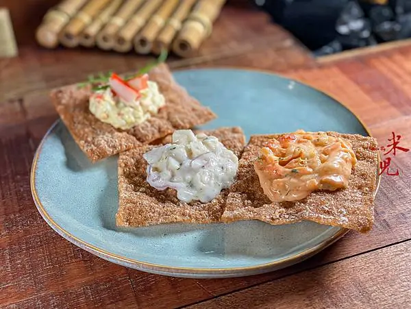 陽春白雪,酥薄的脆餅夾上三層內餡,層層不同,適合一片一片拿起來享用,最上面的是和風蛋沙拉、中間是帶著芥茉辛嗆味的鮑魚沙拉,最底下則是最受歡迎的龍蝦沙拉,三種風味,各有妙處,最重要的是那薄脆,明明我拍照拍了很久,吃也吃得慢,居然到最後一口都還酥脆爽口。