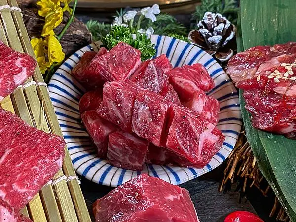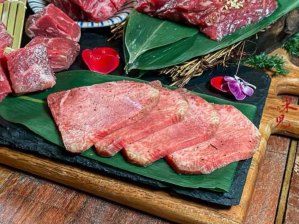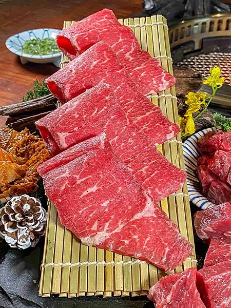 美國牛小排自是燒肉者的最愛,以厚條的分切方式處理,為了讓熟度更均一,以木屐刀法切出紋路,確保每一口的口感都一致。
