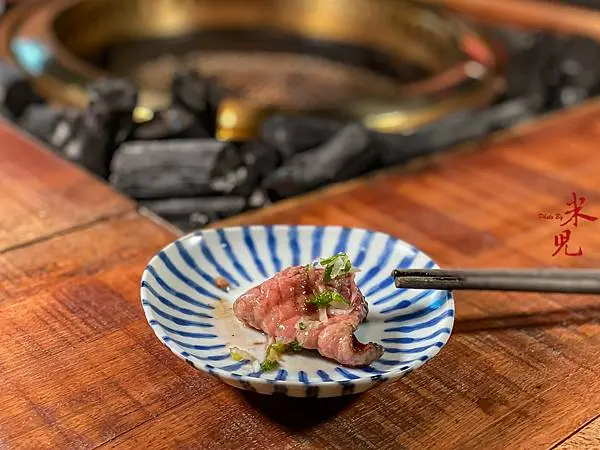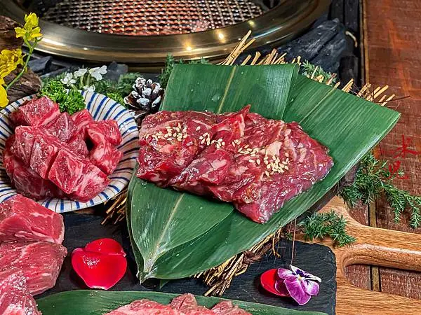 穀飼700天的奧汀牛橫隔膜外裙,因為靠近內臟,有著獨特的牛肉風味,盛盤前以特製醬汁略為醃過,燒烤後肉質油潤滑順,濃郁的風味是許多嗜食燒肉的老饕最愛。