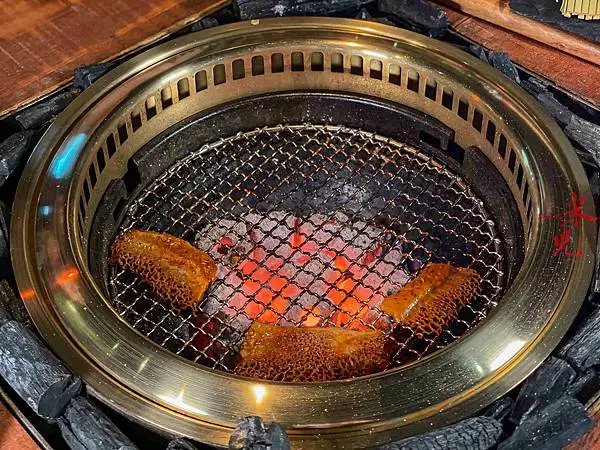 我最愛的烤牛舌,因為油脂豐富,一邊烤還會竄出火舌,畫面十分誘人。