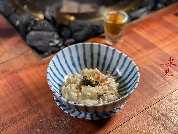 有趣的是,這名為烏頭山丘的雜炊也是用這白胡椒湯底煮成,最後點綴松露和金箔,整個超豪華的啊,所以美文明明一直叫很飽還是把它默默吃光光,我則完全吃不動了。