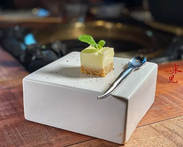 羊脂白玉,是用鮮奶烤製成,有點像起司蛋糕,小小一口,清甜不膩。