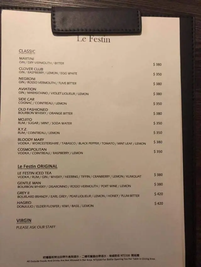 Le Festin:發現在台北市大直捷運劍南路站明水路上新開一間法式餐廳,用合理的價位就可以品嚐到無國界料理的西餐,使用多種中西食材發揮創意,像是「醃漬生和牛.紅蔥.白花椰.蛋筒」、「馬頭魚.白蘿蔔.冬瓜.油菜花醬」、「三色番茄.開心果.瑞可達起司.蜜餞.九層塔油」等等都是特色餐點,這裡還有專業的調酒吧,不只紅白酒、氣泡酒、威士忌、啤酒等多種選擇,滿足不同聚餐約會的需求。