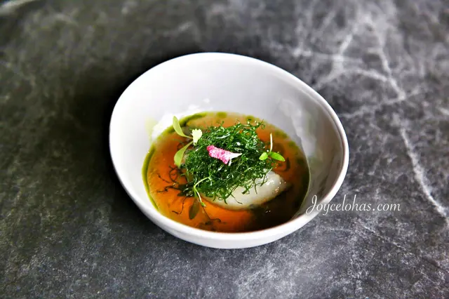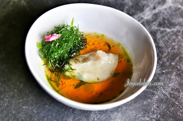 開胃菜 – 「慢烤生蠔.日式魚高湯.芥藍.蔥油」