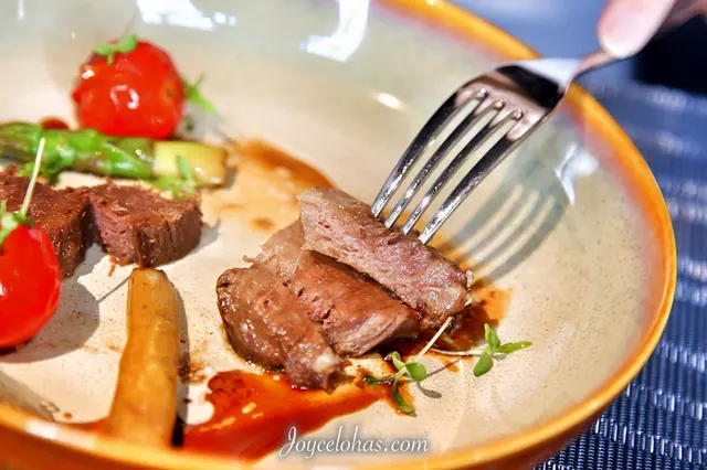 口感軟中帶嚼勁兒,肉質細嫩的無骨牛小排,五分熟度剛剛好,不只原味香鮮,旁邊還有柚子胡椒、松露醬可以搭配,讓風味上有不同層次的變化,飽足後又不易膩口。