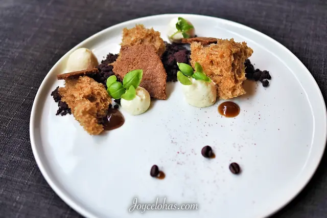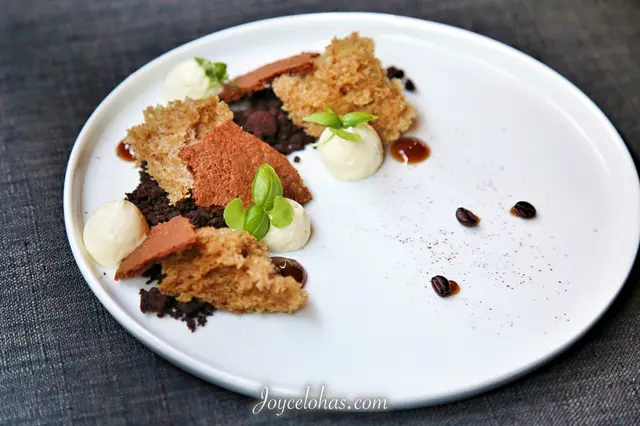 ▼甜點 – 「咖啡蛋糕.馬斯卡邦慕斯.咖啡醬.榛果巧克力瓦片」