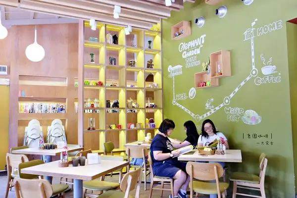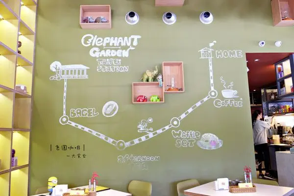 位在內湖碧湖公園對面的象園咖啡,店內充滿了許多大象的擺陳及設計,