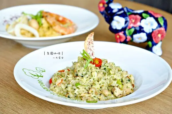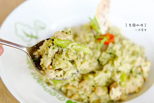 且青醬吃起來不會膩、燉飯整體的鹹香氣很足,因著各款配料的加持,整體口感層次很豐富,