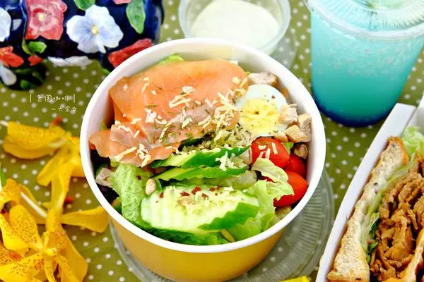 ▼為了更有野餐的感覺,所以我們特地外帶了一盒沙拉,一齊野餐去啦!
