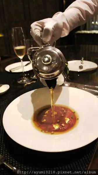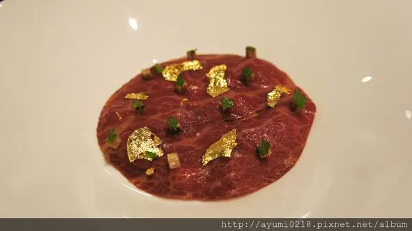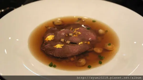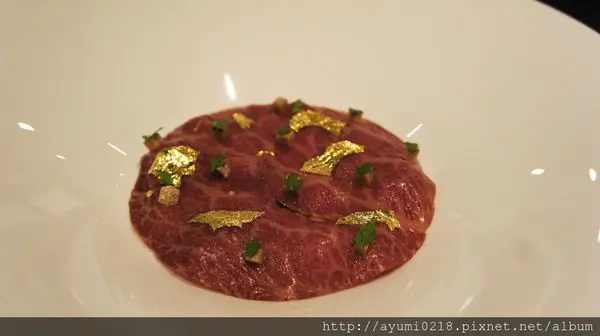 我說..這塊牛肉是不是穿金戴銀了..上頭的金箔也太...over...是皇家等級