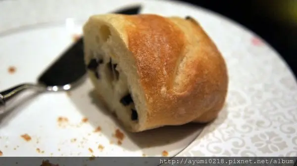 第一個餐包是-裸麥核桃...老實說~我不愛這款長相很平淡的麵包...但空氣中飄散著烘培麵粉的味道及新鮮核桃的核果味...