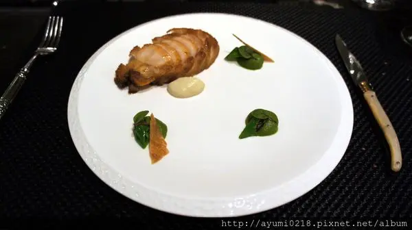 炙煎南非鮑襯脆皮佐龍豆橄欖