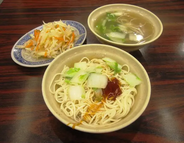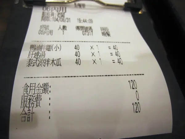 這次點了鴨油拌麵,泰式涼拌木瓜絲和肝連湯