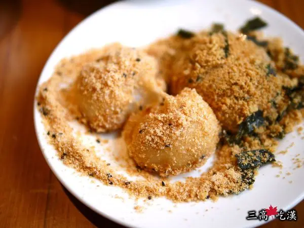 甜鹹燒麻糬的視覺觀感依舊不錯,甜麻糬的花生粉中有著細白糖粒,