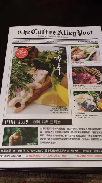 這是咖啡弄的菜單 - 做的很像廣告單,千萬不可以在上面劃劃喔((因為朋友想寫卡片,看筆有沒有水差一點在上面劃呢這裡的低消是每人一杯飲料呢^^