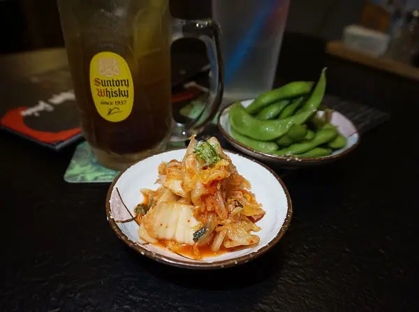 店家很熱情招待餐前小菜,Yulin去吃居酒屋或燒烤最愛搭配的就是泡菜,