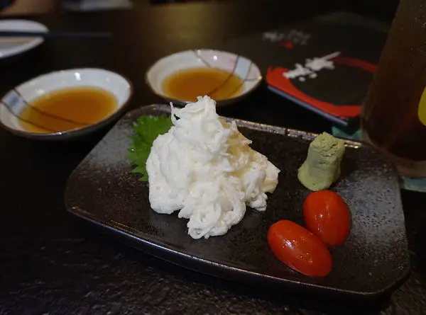 一上桌也讓人好奇,通常牛蒡天婦羅也長得很像基隆天婦羅一樣,一片圓圓的橘色,
