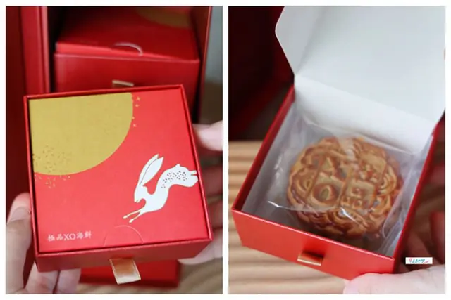 這個月餅禮盒,上面是對開的長型盒,底層是正方形。