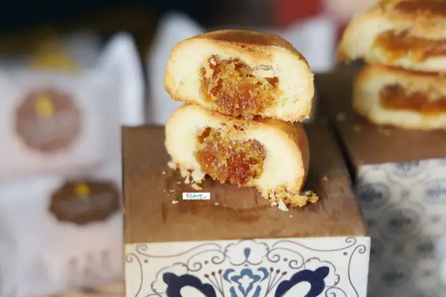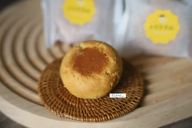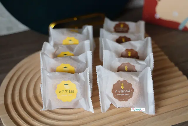 同樣的做法,但把鳳梨餡改成芒果餡,入口先是奶香十足,尾韻才是芒果特有的酸甜。特殊口感讓這鳳梨酥、芒果酥吃來更有層次。以鳳梨台語「旺來」的諧音命名,十分喜氣,月餅圓圓的模樣討喜又可愛,月亮酥餅名字由此而來,充份傳達全民期盼景氣回春、「月來月旺」的期盼。
