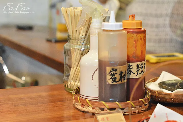 吧檯邊上則放著醬料罐,分別為蜜柚醬、味辣醬。
