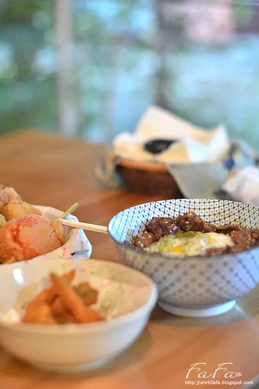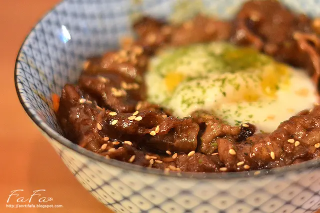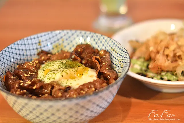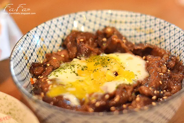 搭配半熟蛋的牛丼是店裡受歡迎菜色之一,牛肉醃製的入味每一口都是越嚼越香,
