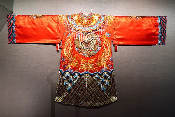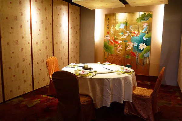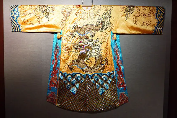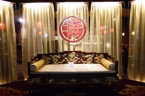 隨後服務人員帶著我穿過大堂,走進長廊裡,旁邊掛著一件紅通通的鳯袍,這只有在古裝劇裡才看得到,接著又是一件金黃色的龍袍映入我眼簾,好一個華麗的裝飾,不過我正吶悶著,外頭的座位不是還很多嗎?要帶我去哪兒?!