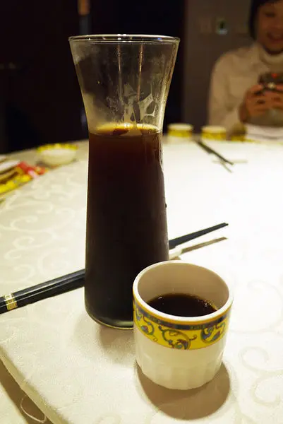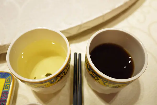 茶的部份大概是泡好沒多久,呈現淡淡的顏色和香氣,在用餐中搭配飲用可去油解膩,而酸梅湯色澤很濃,喝起來酸酸甜甜的,讓人滿意。