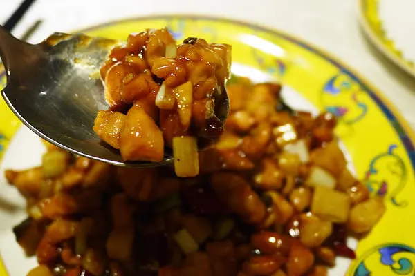 「極品雞丁」是京味料理中的功夫菜,以甜提鮮、以鹹提香,味道甜鹹各半,互相搭配不搶戲,在搭配些許辣椒和花椒提味,配合師父炒菜的功力,把這道雞丁的香、麻、甜、鹹味巧妙的融合在一起卻不突兀,堪稱極品。