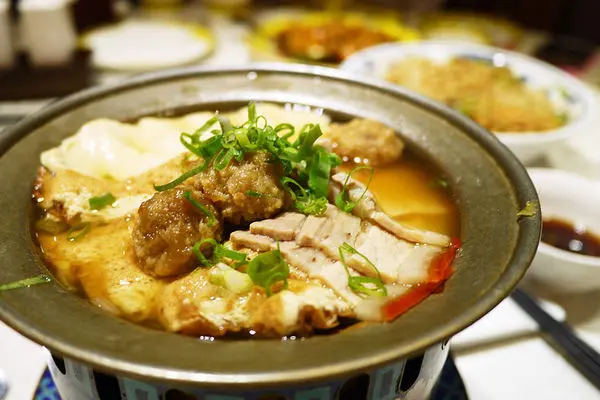 這道火鍋是以酸白菜和白肉的巧妙搭配,在加入北京特色的手工丸子、五花肉和豆腐、寬條冬粉及食蔬一起燉煮,湯頭濃淡得宜。