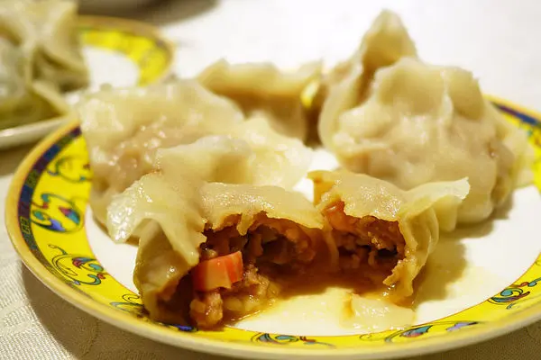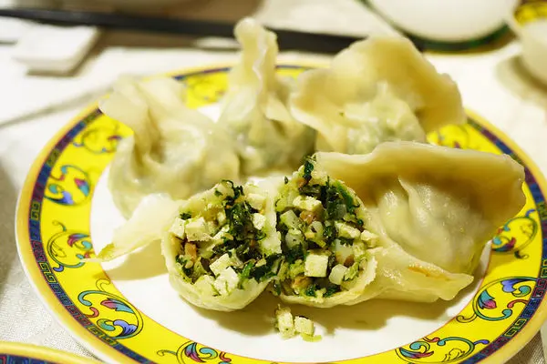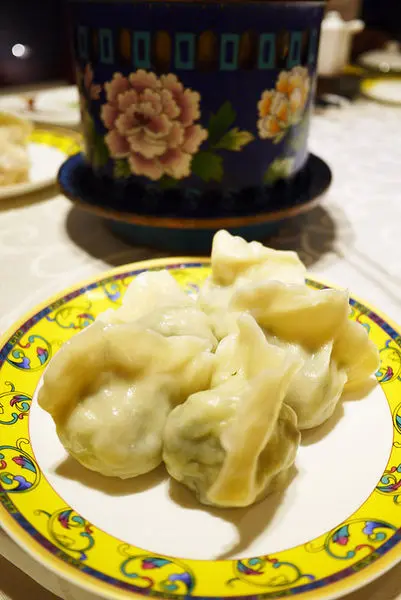 「老滿餃子」用豬肉、蝦仁、韭菜和雞蛋混合的餡料中,在拌入雞汁,每一顆都饀多飽滿,是饀老滿裡的招牌菜,也是慈禧太后當年欽點的好味。這樣一盤五顆餃子共一兩,點菜之後才現包現做,新鮮美味!