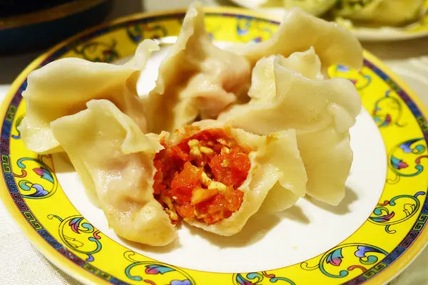 「西紅杮雞蛋餃」是用蕃茄加入雞蛋,外皮可看到紅色微微透出,在中式菜色中常見的蕃茄炒蛋,居然也能包成餃子,妙不可喻!