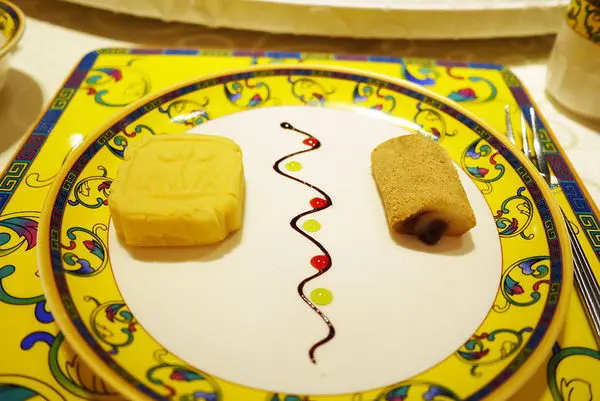 在一道又一道精緻和美味兼具的餐點下肚後,最後的甜點也是我這次所期待的,分別有綠豆糕和驢打滾。