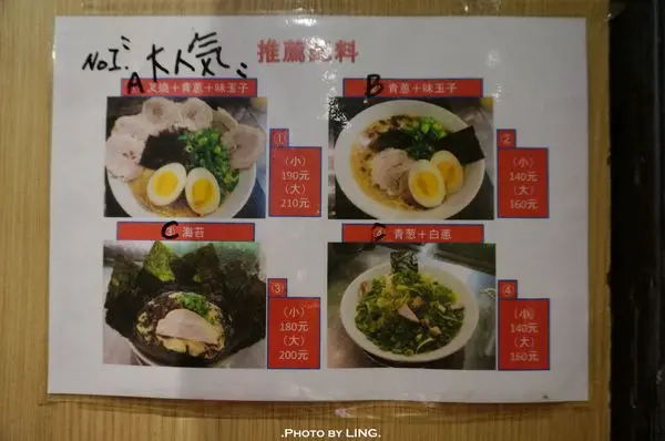 最基本的豬骨拉麵小碗的100元就有了,但就比較陽春,吃完會空虛的份量;