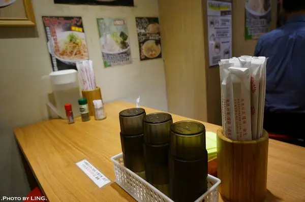 店家簡單的提供冷開水、桌面上有七味粉、紅薑及黑胡椒粉。