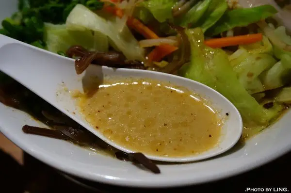 充滿大量蔬菜的豬骨拉麵,點這碗吃超飽。