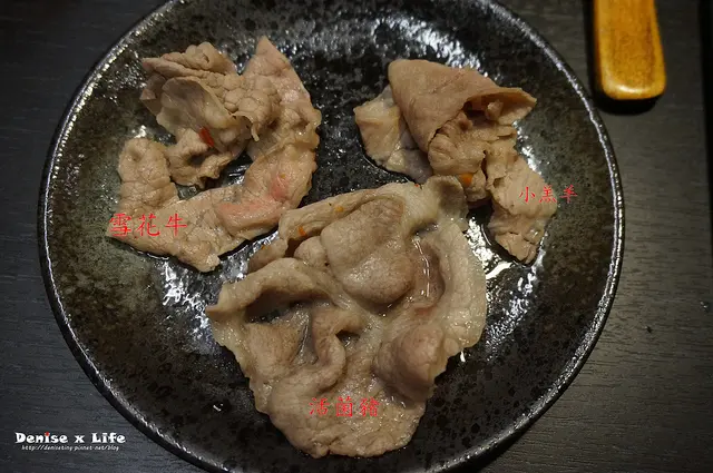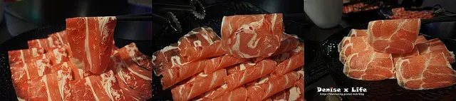 由上而下依序為雪花牛、小羔羊及活菌豬
