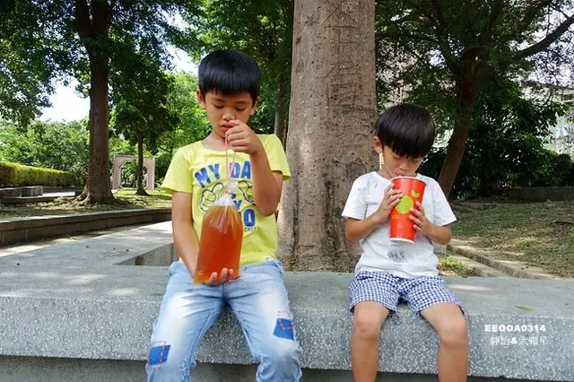所謂無憂茶即是烏龍茶+綠茶=烏綠=無憂,有著淡淡的茶香,喝起來順口不澀,清涼消暑