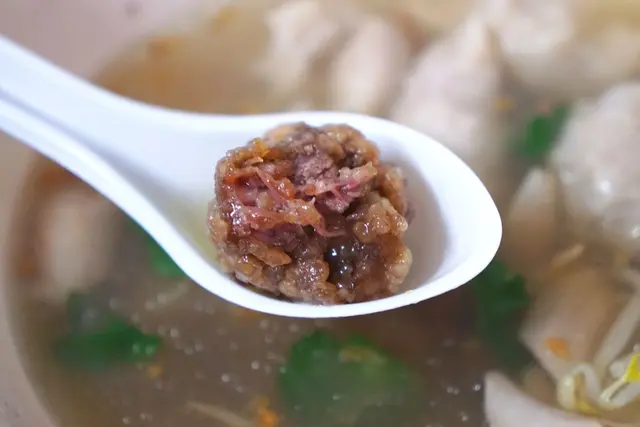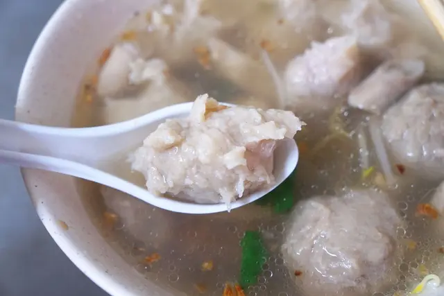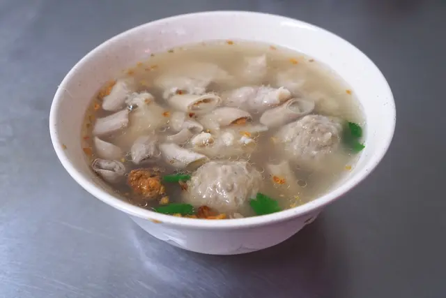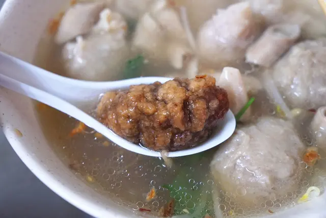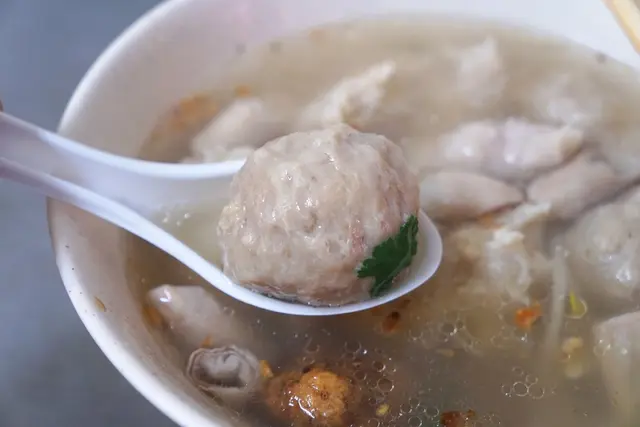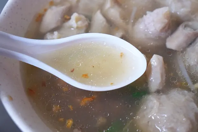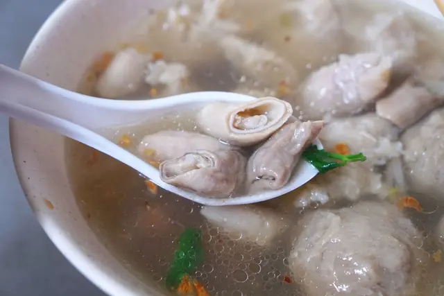 四種綜合湯有豬腸、貢丸、肉羹跟排骨酥