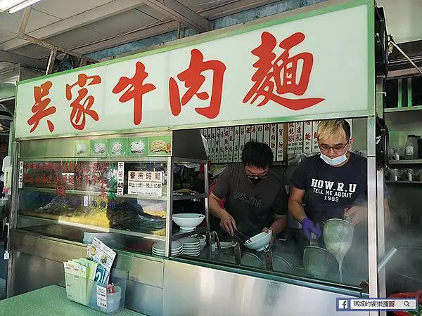一到店裡,門口已經排了7-8個人,網路的推薦果然力量驚人,看到店內坐無虛席,座位不少,但想吃的人更多,於是我們也差不多排了15分人才輪到,耳邊還傳來不少用韓文交談的遊客,現在疫情解封外國遊客也開始回流了;用鐵皮搭建的吳家牛肉麵,店裡的環境是很傳統的麵店,沒有什麼裝潢,舒適和整潔度一般,店裡有裝冷氣搭配好幾台電風扇,我們3/5來用餐的當天中午氣溫差不多25度還不算熱,若是夏天來我應該會坐不住吃這熱呼呼的湯麵。